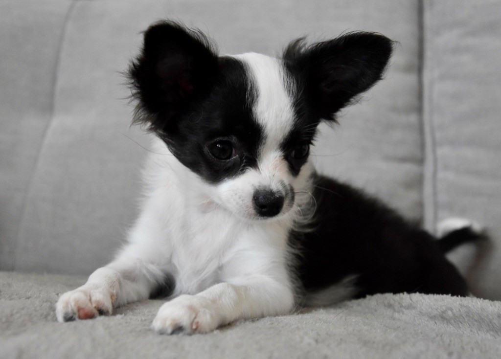 Superbe princesse noire et blanche. C'est une petite puce adorable, très attachante, pleine de vie et d'énergie avec de l'amour à revendre.